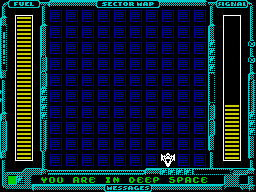 You need to explore the sector of space as you go along, using the strength of the stricken starship's distress signal as a guide. You have limited fuel capacity, and you should try to avoid asteroids, through which careful navigation saps extra fuel, and hyperspaces, large wormholes which throw you out of your way. Planets, on the other hand, are a source of fuel.